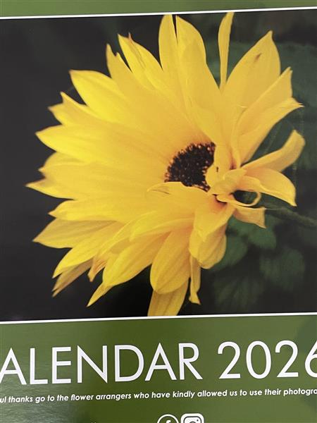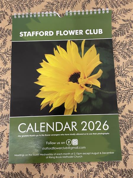 2026 calendar featuring pictures of arrangements made by Stafford Flower Club
