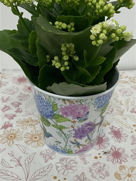 White Kalanchoe in Floral Zinc Pot